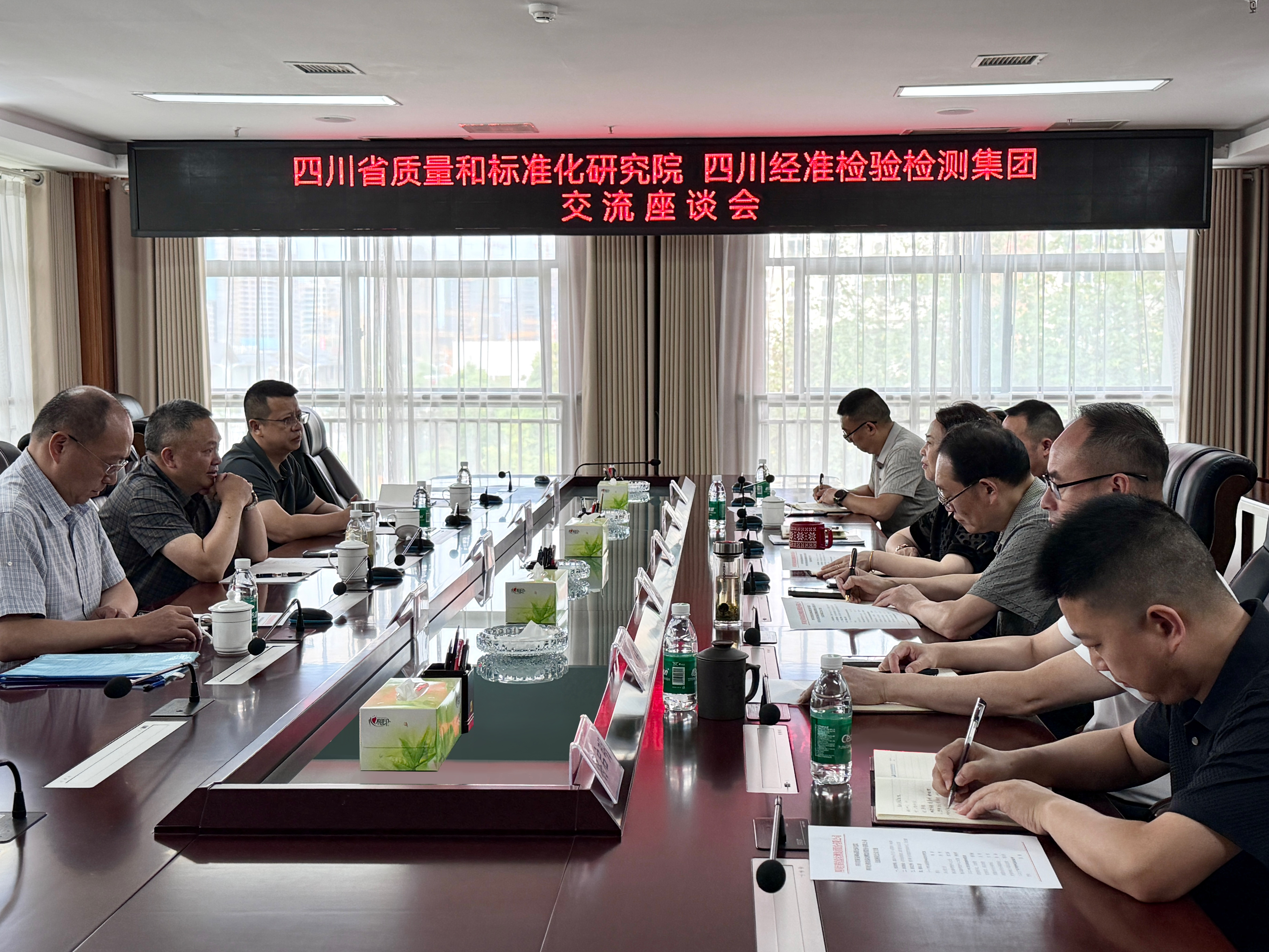 6月5日,省質(zhì)量標(biāo)準(zhǔn)院院長(zhǎng)林濤一行赴四川經(jīng)準(zhǔn)檢驗(yàn)檢測(cè)集團(tuán)股份有限公司(以下簡(jiǎn)稱(chēng)四川經(jīng)準(zhǔn)集團(tuán))調(diào)研交流。四川經(jīng)準(zhǔn)集團(tuán)總經(jīng)理熊鳳梅、副總經(jīng)理吳明出席交流座談會(huì)。會(huì)上,林濤介紹了省質(zhì)量標(biāo)準(zhǔn)院近期職能擴(kuò)充、部門(mén)調(diào)整、隊(duì)伍建設(shè)的有關(guān)情況,分享了拓展業(yè)務(wù)領(lǐng)域、推進(jìn)重點(diǎn)項(xiàng)目以及加強(qiáng)院企合作等方面的工作思路和經(jīng)驗(yàn)。熊鳳梅介紹了企業(yè)沿革、業(yè)務(wù)特點(diǎn)和質(zhì)量管理體系建設(shè)等基本情況,并對(duì)集團(tuán)下一步的發(fā)展方向和重點(diǎn)工作進(jìn)行了詳細(xì)展示。雙方結(jié)合自身優(yōu)勢(shì),重點(diǎn)就物品編碼技術(shù)在檢驗(yàn)檢測(cè)領(lǐng)域的創(chuàng)新應(yīng)用、標(biāo)準(zhǔn)化科研項(xiàng)目的協(xié)同開(kāi)展、院企全面合作的方式路徑等內(nèi)容開(kāi)展了充分、務(wù)實(shí)的討論,達(dá)成了優(yōu)勢(shì)互補(bǔ)、合作共贏(yíng)、協(xié)同發(fā)展為主旨的合作意向。省質(zhì)量標(biāo)準(zhǔn)院、四川經(jīng)準(zhǔn)集團(tuán)相關(guān)部門(mén)負(fù)責(zé)人參加座談。