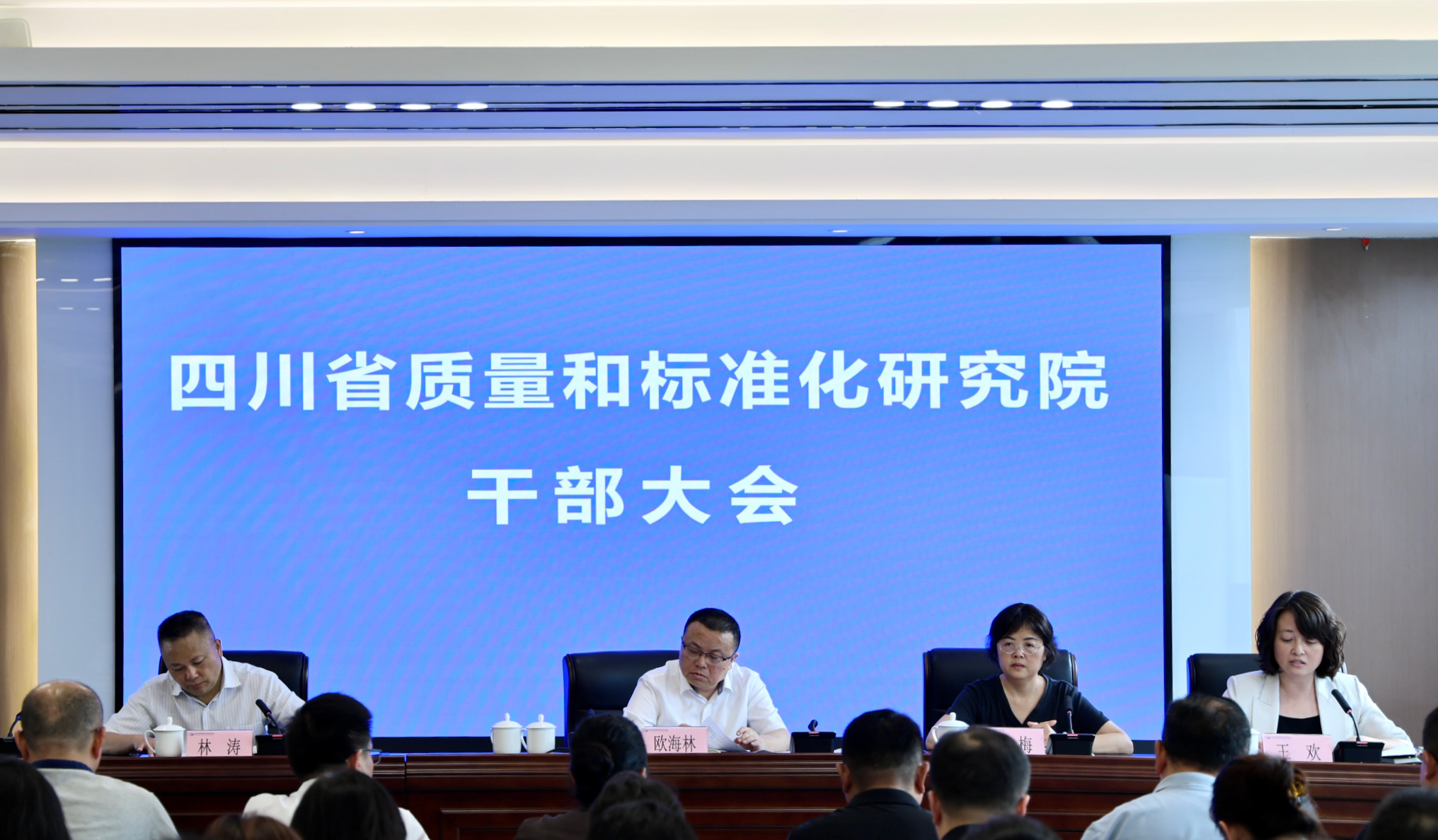 9月12日,省質(zhì)量標(biāo)準(zhǔn)院召開(kāi)干部大會(huì)。省市場(chǎng)監(jiān)管局黨組成員、副局長(zhǎng)歐海林出席會(huì)議并講話(huà),人事處處長(zhǎng)趙梅主持會(huì)議,省質(zhì)量標(biāo)準(zhǔn)院院長(zhǎng)林濤出席會(huì)議。會(huì)議宣布了省局黨組關(guān)于王歡同志任省質(zhì)量標(biāo)準(zhǔn)院黨委書(shū)記的決定。會(huì)上,歐海林對(duì)省質(zhì)量標(biāo)準(zhǔn)院近年來(lái)的工作給予充分肯定,并對(duì)單位未來(lái)發(fā)展提出三點(diǎn)要求,一是要講政治。堅(jiān)定擁護(hù)“兩個(gè)確立”、做到“兩個(gè)維護(hù)”,切實(shí)把思想和行動(dòng)統(tǒng)一到上級(jí)決策部署上來(lái),確保各項(xiàng)工作有序推進(jìn);二是要抓業(yè)務(wù)。要鞏固存量、拓展增量、確保質(zhì)量,在鞏固和深化傳統(tǒng)優(yōu)勢(shì)業(yè)務(wù)的基礎(chǔ)上,積極向低空經(jīng)濟(jì)、氫能等新興產(chǎn)業(yè)領(lǐng)域開(kāi)拓布局,不斷提升科研創(chuàng)新能力和技術(shù)服務(wù)支撐水平,始終嚴(yán)守工作標(biāo)準(zhǔn),筑牢紀(jì)律防線(xiàn),確保每一項(xiàng)成果質(zhì)量過(guò)硬、每一項(xiàng)工作廉潔高效;三是要強(qiáng)黨建。持續(xù)推進(jìn)黨風(fēng)廉政建設(shè),發(fā)揮黨支部的戰(zhàn)斗堡壘作用和黨員的先鋒模范作用,以高質(zhì)量的黨建工作引領(lǐng)事業(yè)發(fā)展。林濤、王歡分別作表態(tài)發(fā)言,省質(zhì)量標(biāo)準(zhǔn)院全體干部職工參加會(huì)議。
