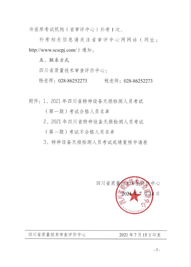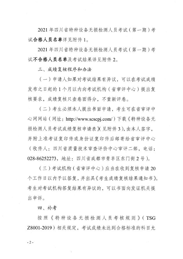 關(guān)于2021年四川省特種設(shè)備無(wú)損檢測(cè)人員考試(第一期)考試結(jié)果的通知