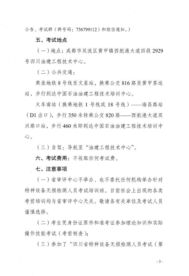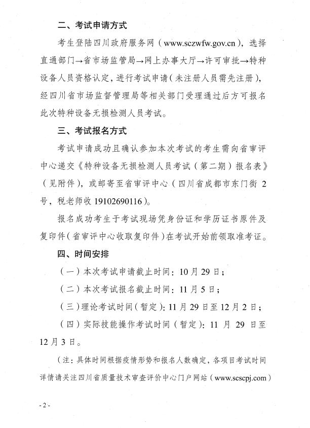 關(guān)于開展四川省特種設(shè)備無損檢測人員考試(第二期)工作的通知