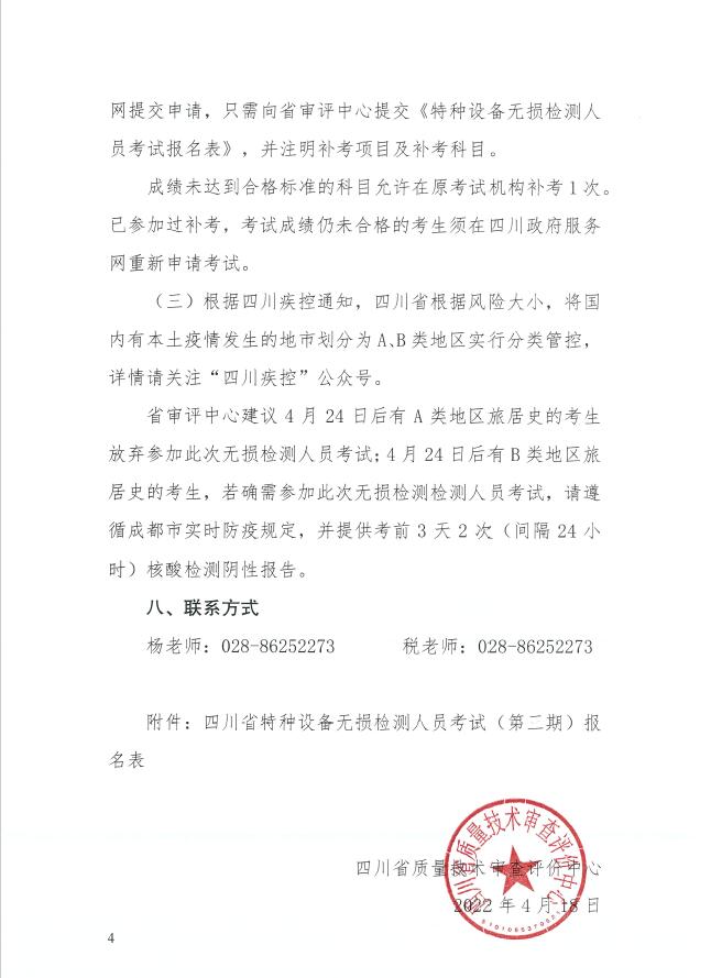 川審評(píng)函(2022)3號(hào):關(guān)于開展特種設(shè)備無損檢測人員考試(第三期)工作的通知 |