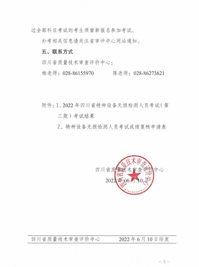 關(guān)于2022年四川省特種設(shè)備無損檢測人員考試(第三期)考試結(jié)果公示的通知