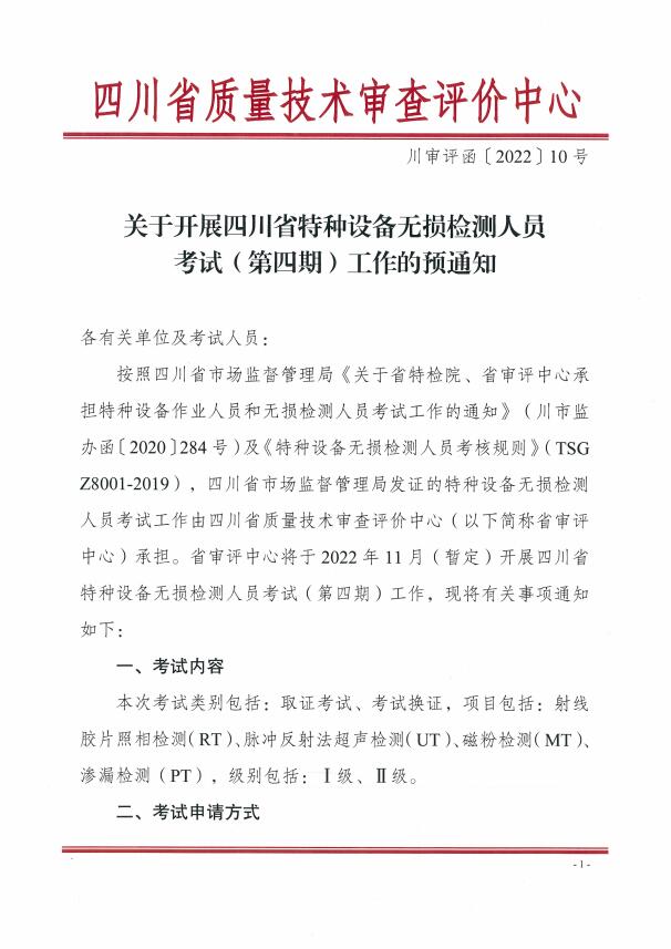 關(guān)于開展特種設(shè)備無損檢測(cè)人員考試(第四期)工作的預(yù)通知