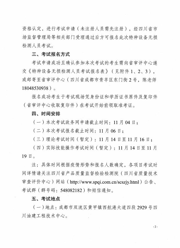 關(guān)于2022年四川省特種設(shè)備無損檢測人員考試(第二期)考試安排的通知)