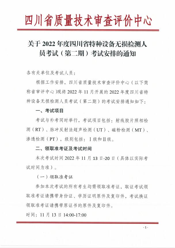 關(guān)于2022年四川省特種設(shè)備無損檢測人員考試(第二期)考試安排的通知)