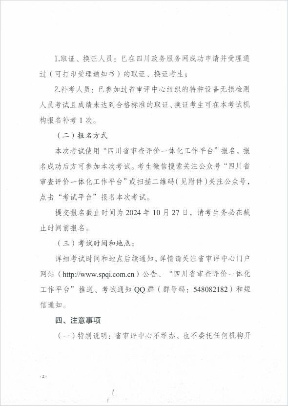 關(guān)于2024年四川省特種設(shè)備無損檢測人員資格考試(第二期)安排的通知