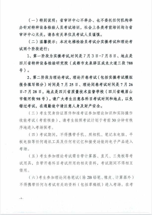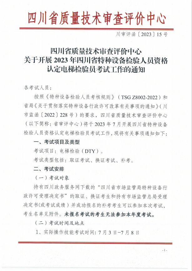 關于開展2023年四川省特種設備檢驗人員資格認定電梯檢驗員考試工作的預通知