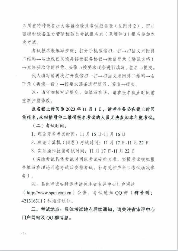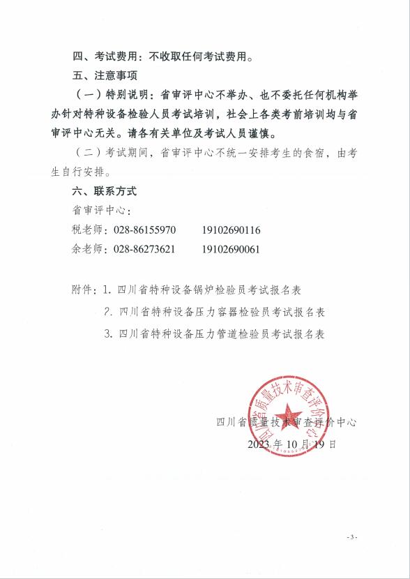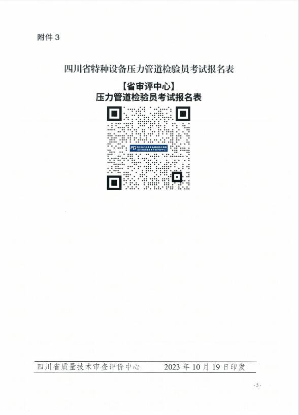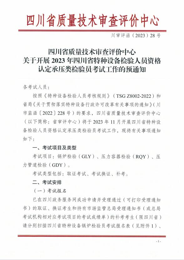 川審評函(2023)28號:關(guān)于開展2023年四川省特種設(shè)備檢驗人員資格認定承壓類檢驗員考試工作的預通知