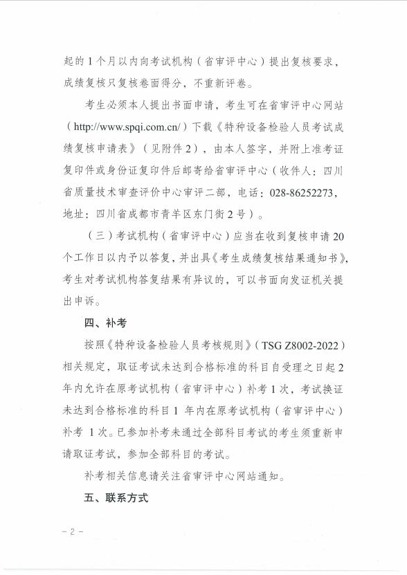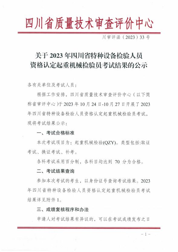 關(guān)于2023年四川省特種設(shè)備檢驗人員資格認定起重機械檢驗員考試結(jié)果的公示