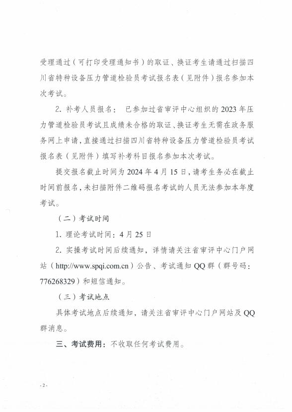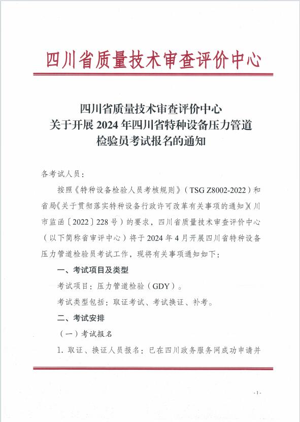關(guān)于開展2024年四川省特種設(shè)備壓力管道檢驗員考試報名的通知