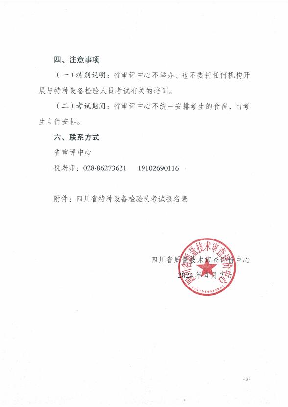 關(guān)于公布2024年四川省特種設(shè)備檢驗員考試計劃的通知