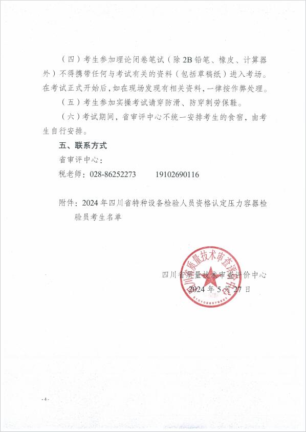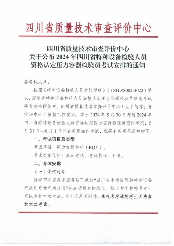 關(guān)于公布2024年四川省特種設(shè)備檢驗(yàn)人員資格認(rèn)定壓力容器檢驗(yàn)員考試安排的通知