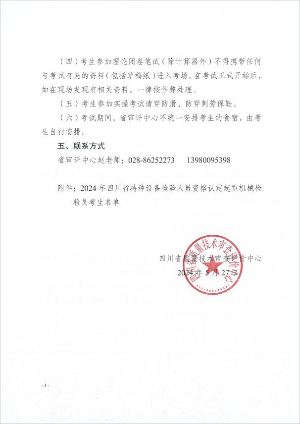 關(guān)于公布2024年四川省特種設(shè)備檢驗(yàn)人員資格認(rèn)定起重機(jī)械檢驗(yàn)員考試安排的通知