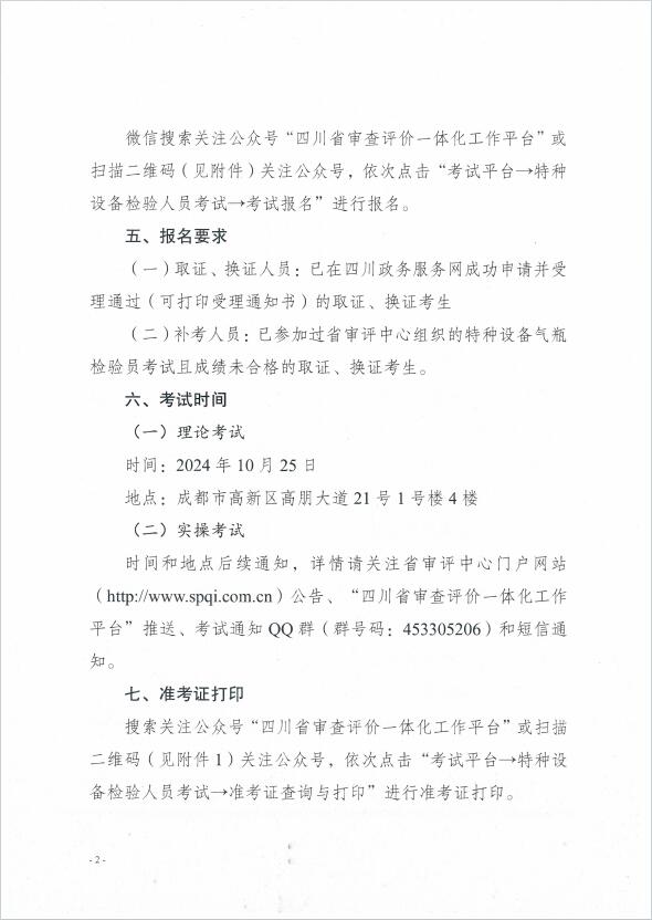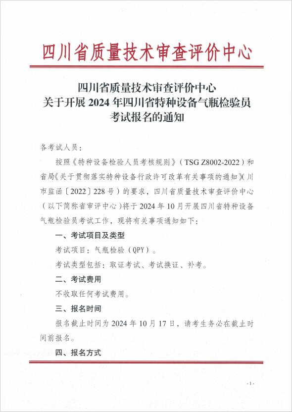 關于開展2024年四川省特種設備氣瓶檢驗員考試報名的通知