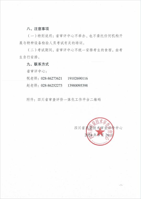 關于2024年四川省特種設備檢驗人員資格認定電梯檢驗員考試安排的通知
